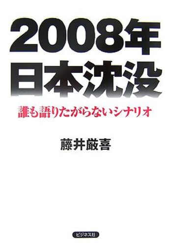 少し前に読んだ本。2008年日本沈没―誰も語りたがらないシナリオ作者: 藤井厳喜出版社/メーカー: ビジネス社発売日: 2007/06メディア: 単行本この商品を含むブログ (2件) を見る最近、どうも強気本より悲観本が数多く出版されているような気がします。 この本…